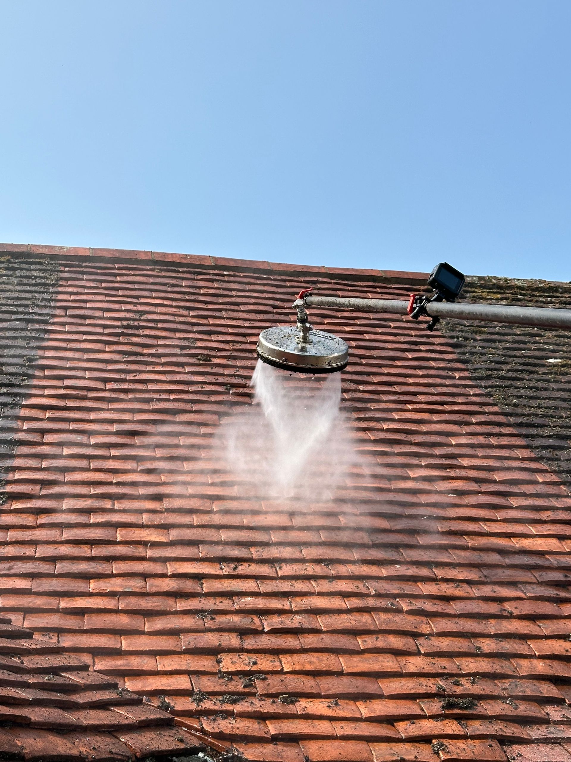Yes — we use non-abrasive softwash techniques and professional-grade biocide treatments to safely remove moss, algae, and dirt without damaging your roof tiles or structure.
